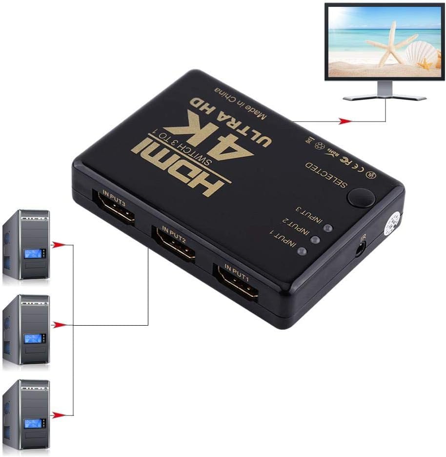 3 Inputs 1 Output HDMI Switch: 1×3 4K HDMI switch can connect 3 HDMI signal sources to 1 HDMI display, supports 4K 2K and 480P/720P/1080P Resolutions, realizing All HDMI Devices Work simultaneously. No software or drivers required. NOTE: You can use it directly without connecting USB Cable, please feel free to contact us if you have any question.